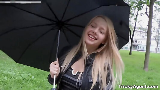 Petite boobed blond with pale skin Lyuba chooses doggy fashion