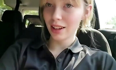 Horny babe Barbara Grey masturbates in the truck and gets humped