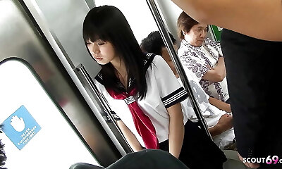 Public Gangbang in Bus - Asian Teen get Plumbed by many aged Guys