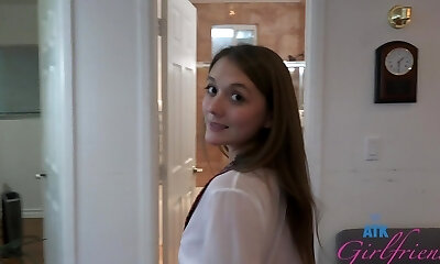 Small tits skinny GF Nelya teases and gets fucked in her tight ass