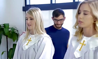 One dude fucks slutty stepsister Daphne Dare and her splendid girlfriend