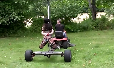 Cowgirl gets her vag and culo boinked by a fucking machine
