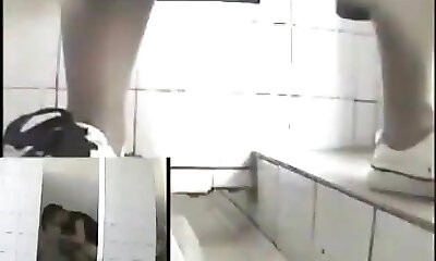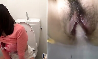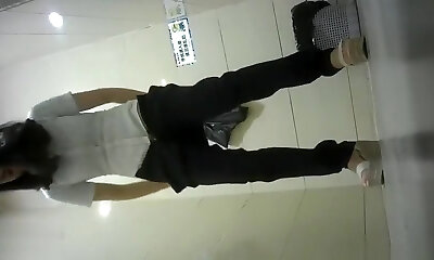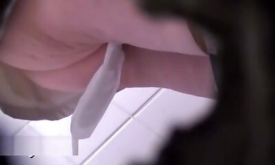 Mature Asian nymph in the well-worn toilet room filmed on hidden cam