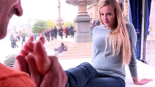 Sole Fetish Act with Big-chested Dark-haired cheating pron Foxe Providing Footjob