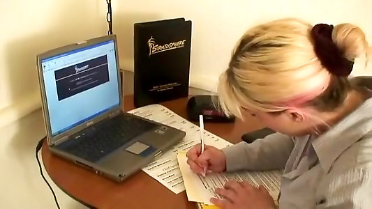 Blonde Amy Douxxx wearing lingerie getting fucked by her boss
