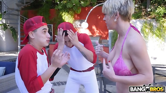 Extraordinaire slutty housewife Dee Williams punishes 2 youthfull dudes with red-hot screw