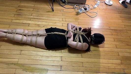 marionnette blonde en my gillfarands mom de retenue coincée dans du polyéthylène dans le porno de domination et de soumission