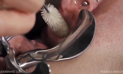 pee hole fucking with toothbrush and injection of long metal chain into her bladder
