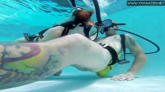 due lezzies brucianti che fanno le forbici in piscina