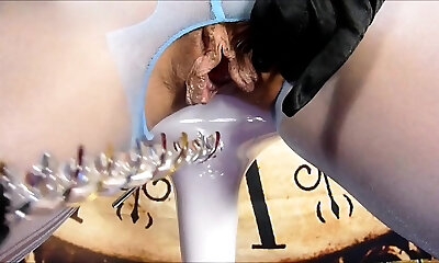 Gaping Russian Pussy solo fake penis riding